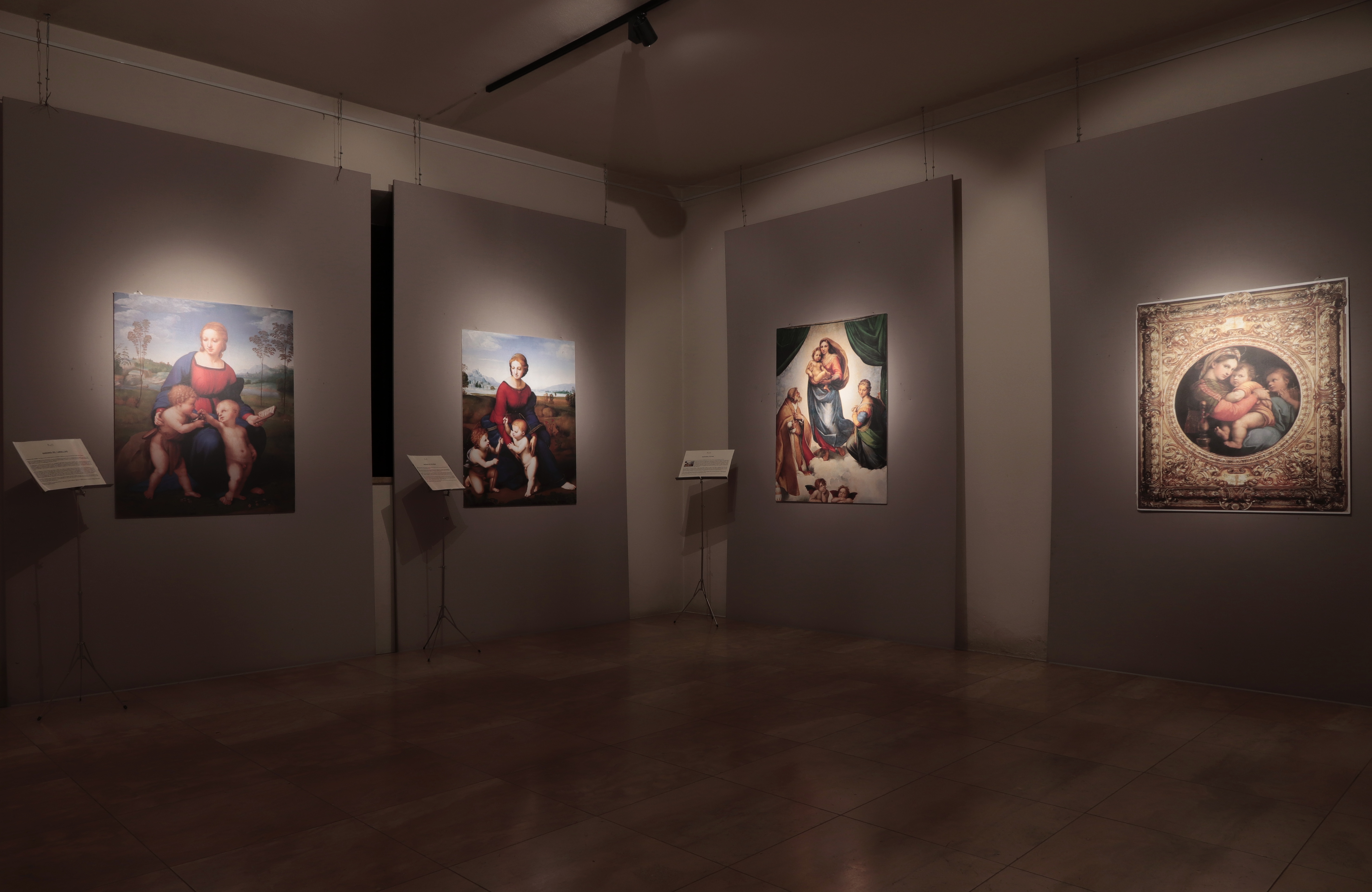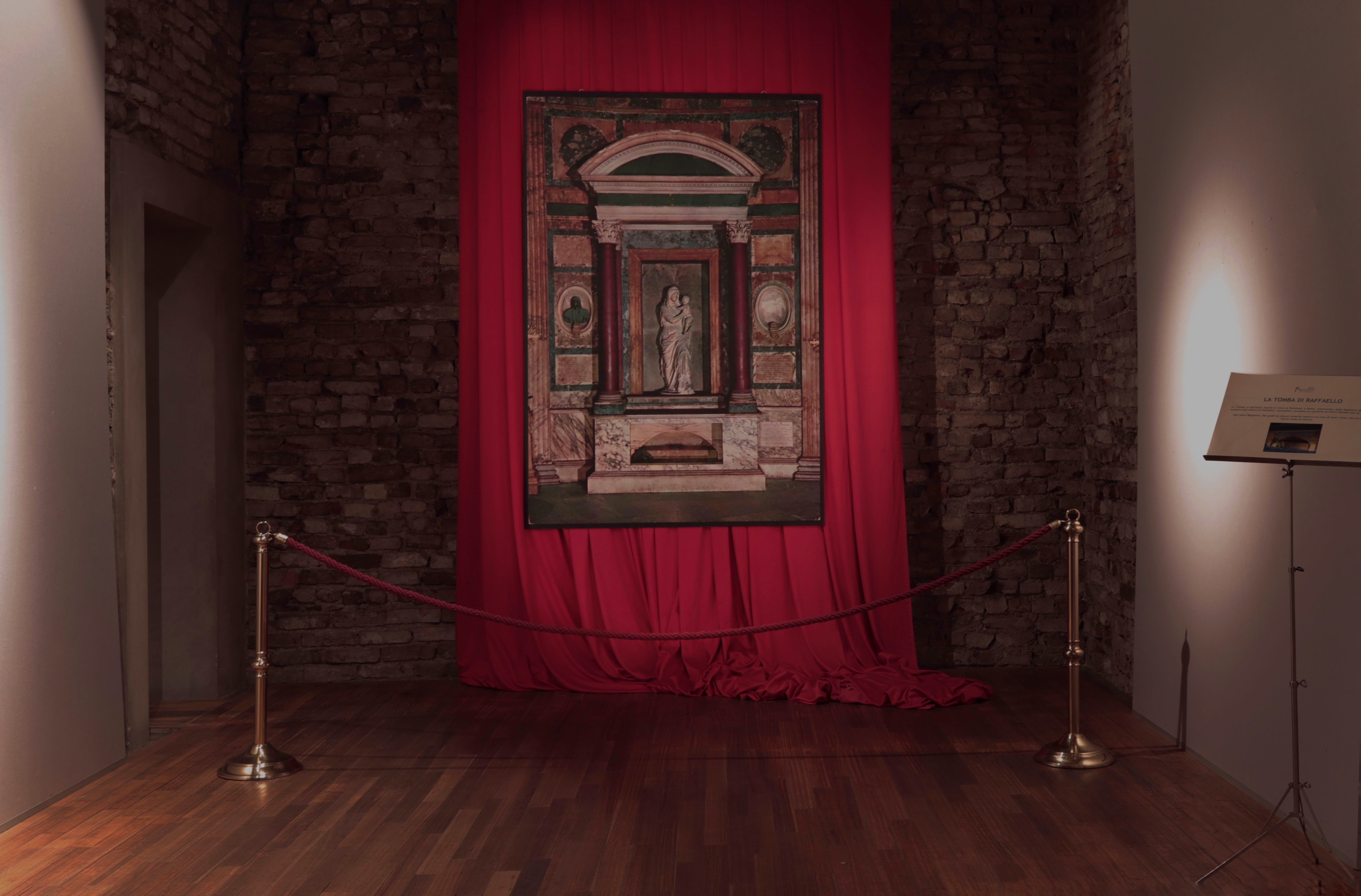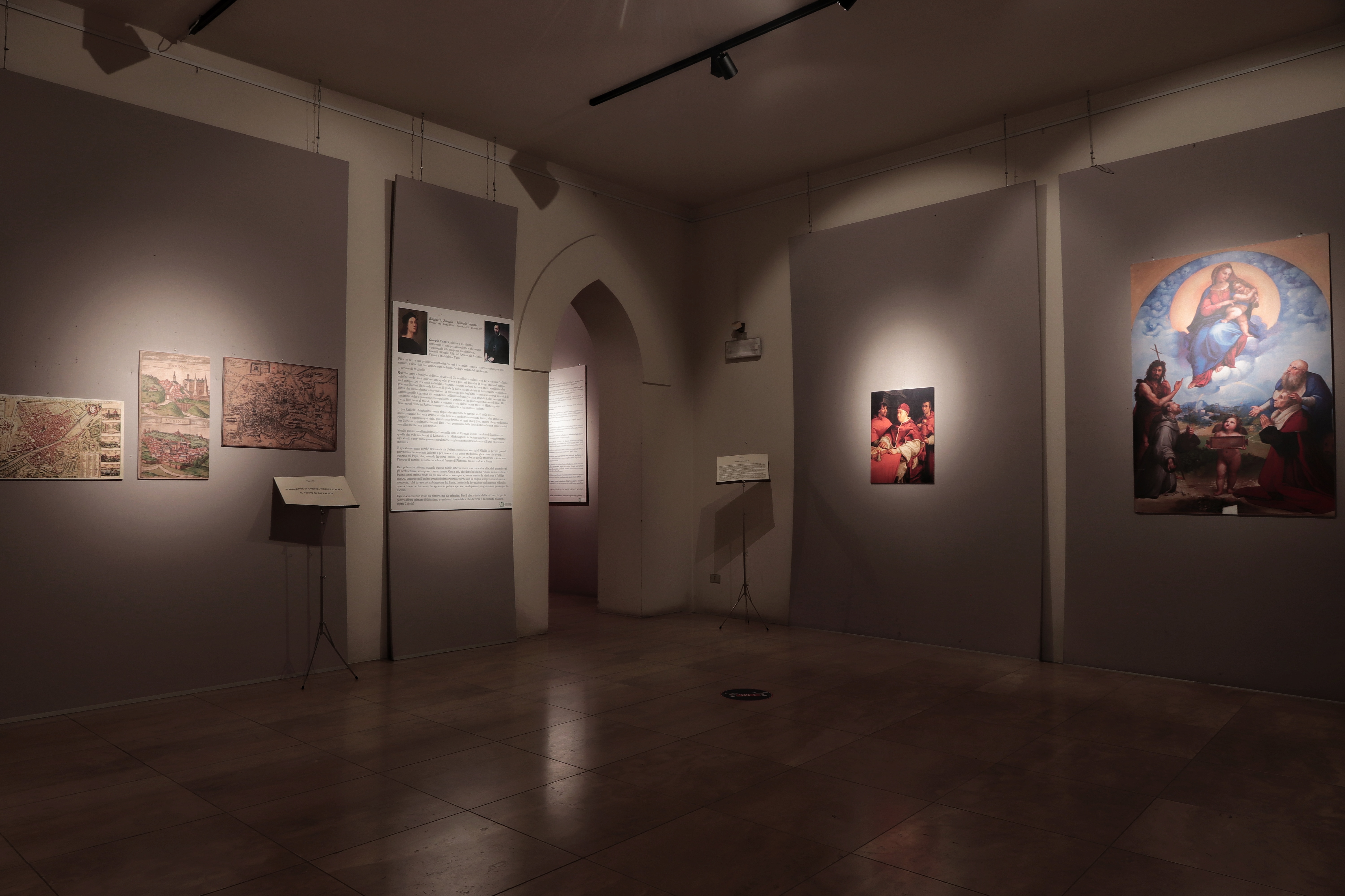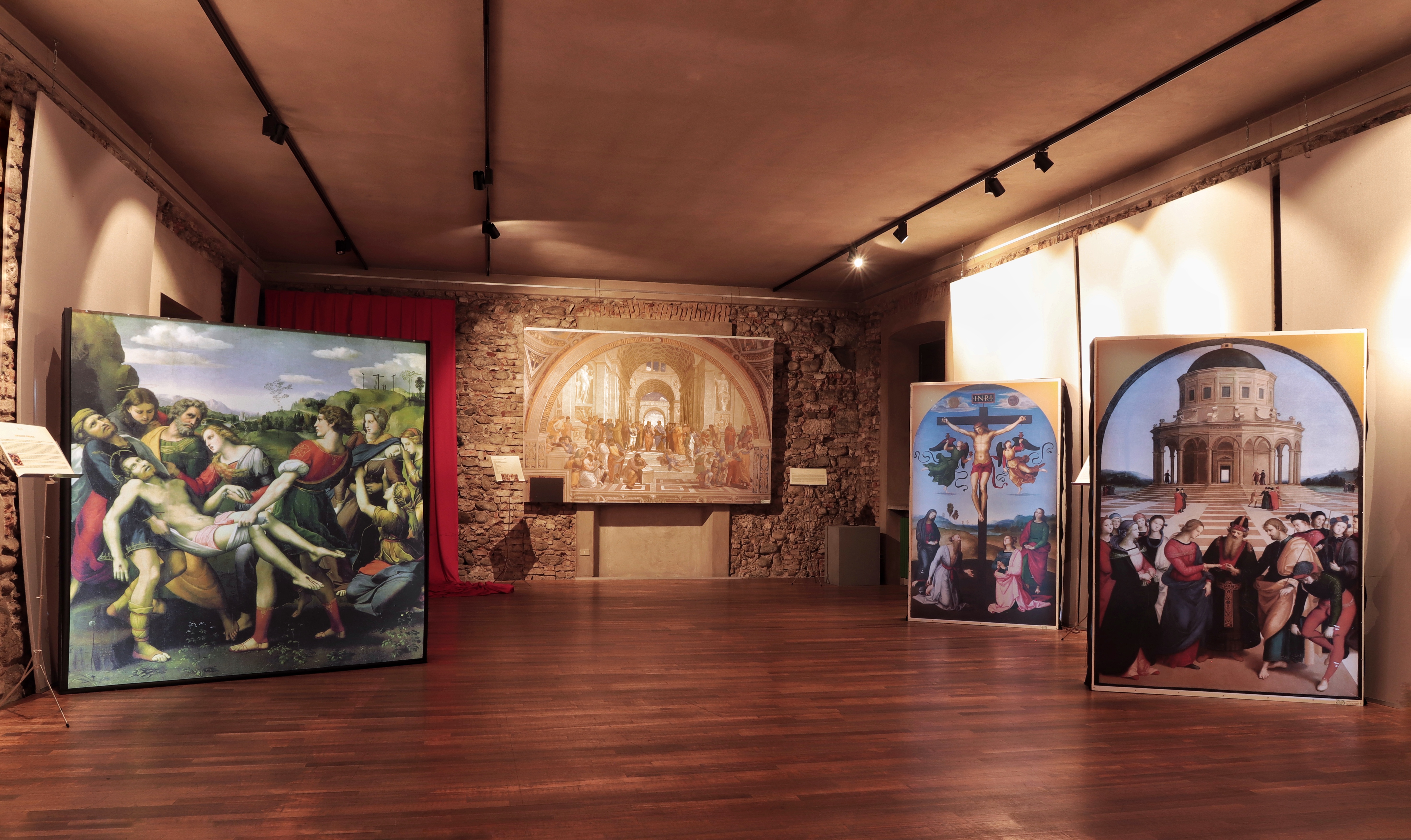 All’interno, dieci riproduzioni a grandezza naturale di altrettante opere di Raffaello: dalla Scuola di Atene allo Sposalizio della Vergine, corredate da un filmato, curato da Artesplorando. Il percorso si conclude, anche se solo idealmente, di fronte alla tomba dell’artista, al Pantheon di Roma.